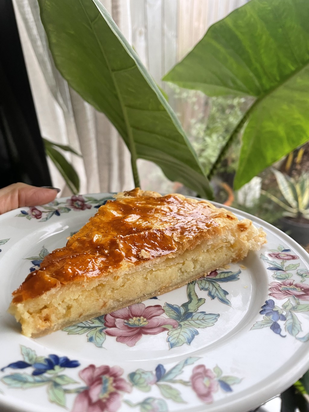 Comme promis, je partage la recette de ma galette des rois de cette année, j’ai suivi la recette de Cyril Lignac pour la Frangipane ( crème pâtissière additionnée de crème d’amandes) et je vous note aussi la technique de Requia pour obtenir un joli feuilletage.
