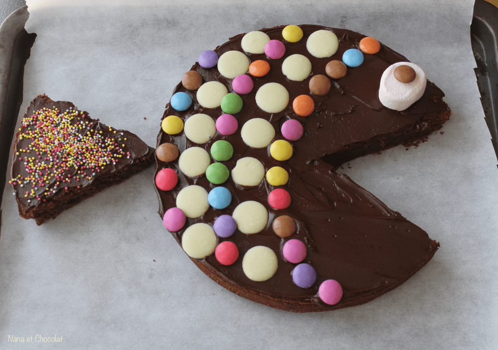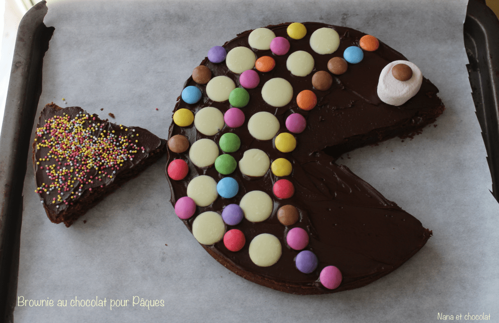 C’est un brownie au chocolat que j’ai transformé en poisson, l’idée m’est venue en fouinant sur pinterest , j’ai trouvé cette recette vraiment sympa et très facile à préparer avec les enfants.